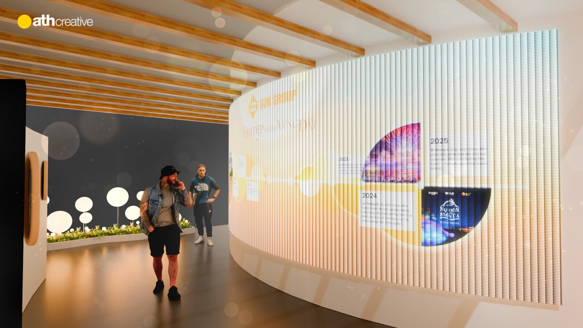 Từ ý tưởng “ánh sáng và sự lan tỏa”, ATH Creative đã phát triển thiết kế gian hàng theo hướng mở, hiện đại và giàu tính dẫn dắt trải nghiệm.